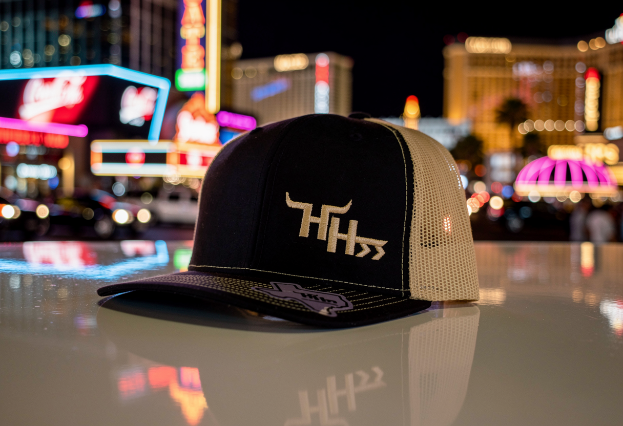 This black and gold colored mesh snapback pay homage to the Vegas rodeo hustle every December.